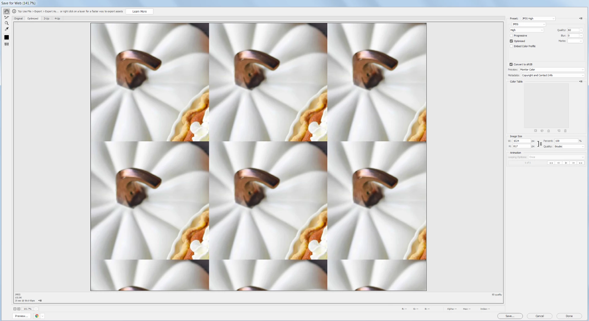Even when I choose Fit in View or Fit on Screen, the image is tiling. And no matter which zoom percentage, part of the image is cut off.