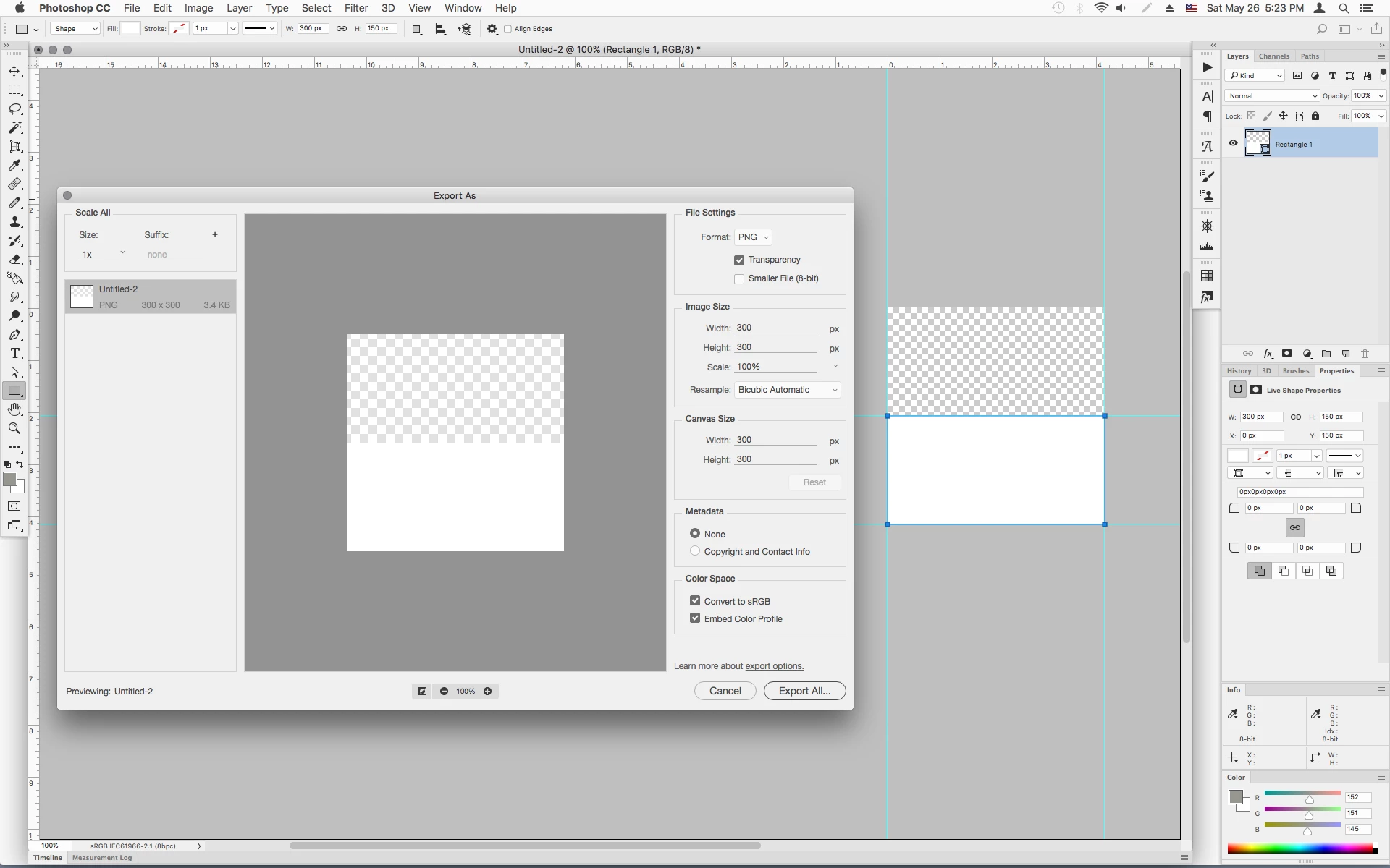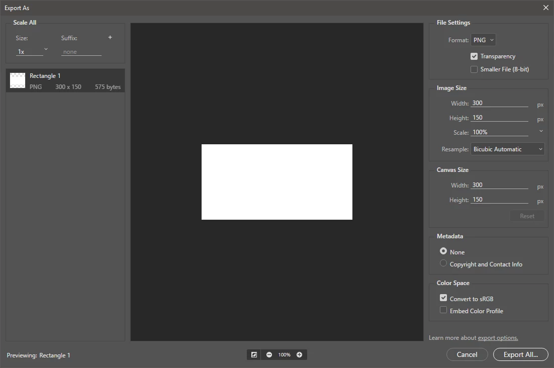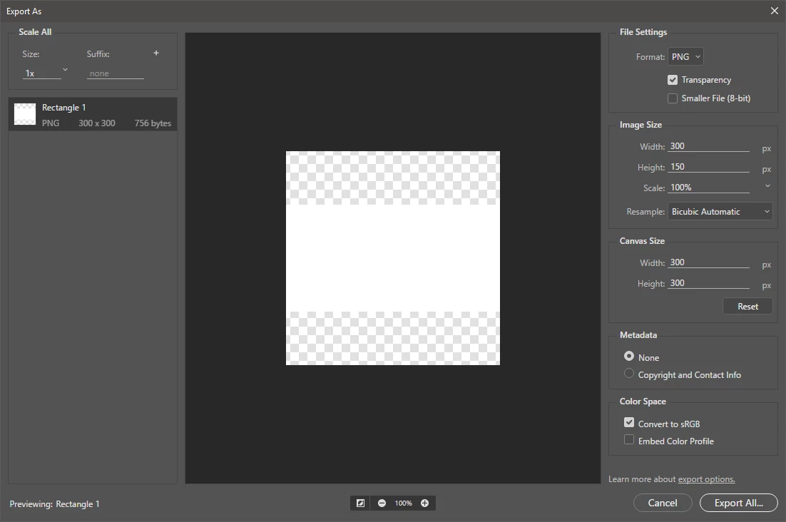 When I export this by right clicking the layer and choose "Export As... " it automatically crops the transparency and will give it a height of 150: