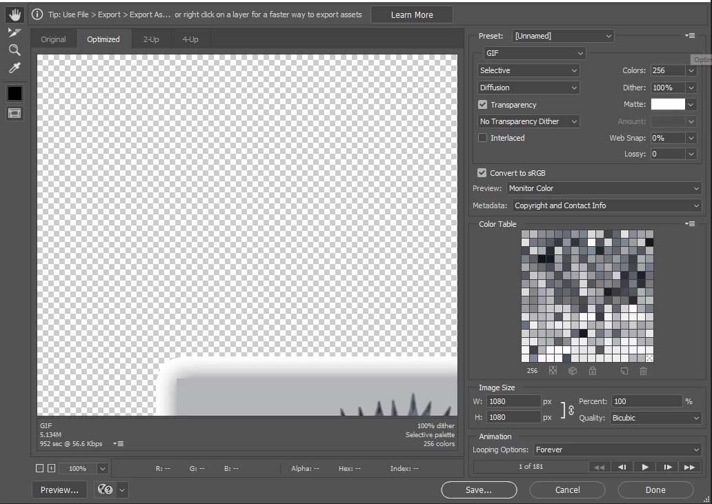 I'm trying to export a PNG sequence as a GIF in Photoshop using Save for Web (Legacy).