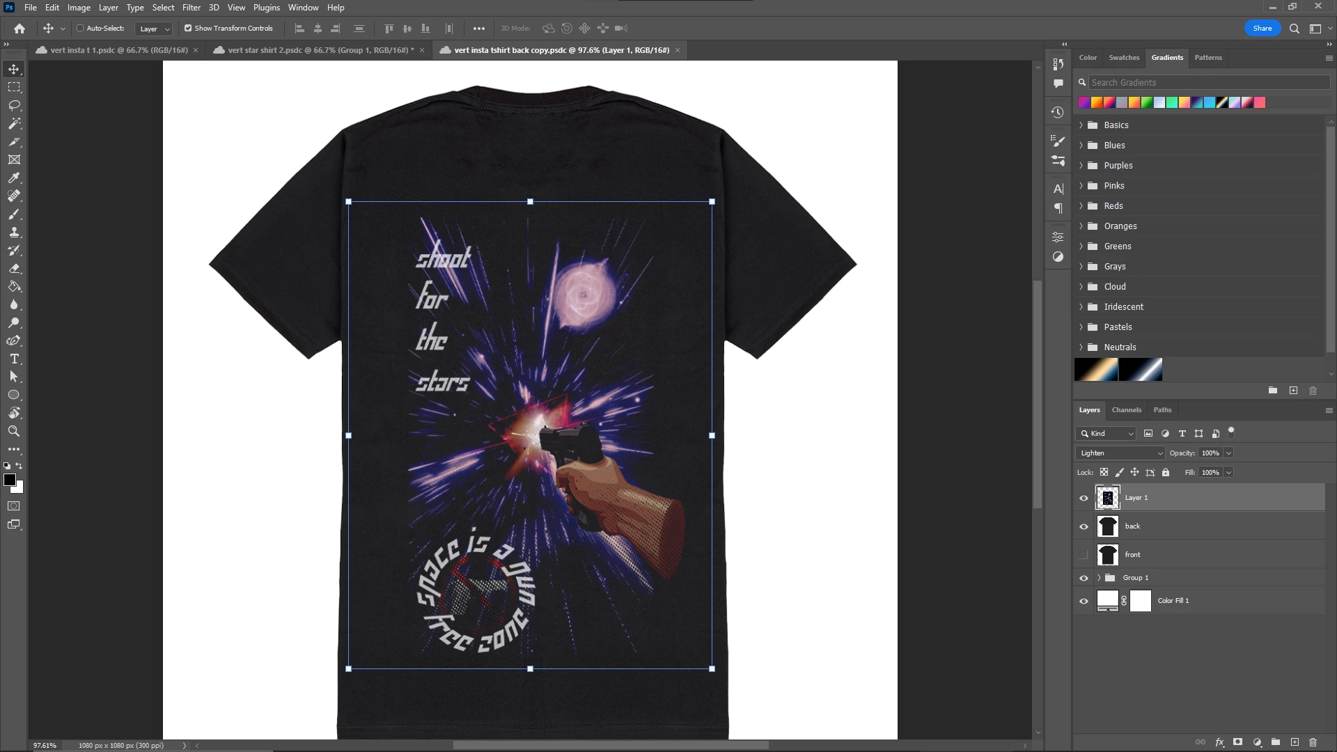 hello, im having a problem where i cannot export a layer in lighten mode and I really need to. I have tried numerous things and nothing seems to work. Please help I want to take the design below and turn it into a png to send to my manufacturer but as soon asz i remove the tshirt i can no longer use lighten mode ass the design is invisible. Please check the images below and let me know what you think.