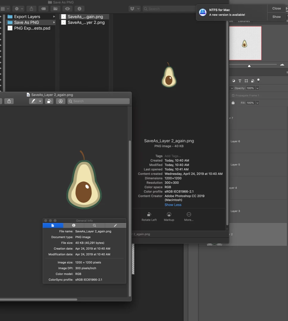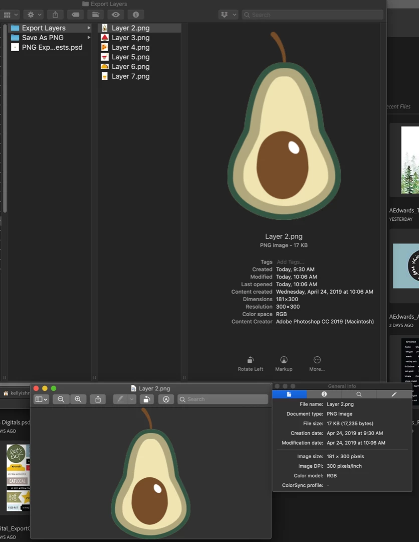 I am responsible for exporting graphic images from Photoshop into high resolution PNG files for use in both digital and paper crafting. I work on a MacOS Mojave and am currently using Photoshop CC 2019.