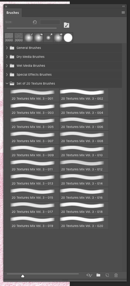 In Adobe Creative Cloud Desktop; I downloaded into my cc library, Photoshop brushes in the form of texture packs with 20 textures (or brushes). There's a bunch of these available for adding to the cc libraries using the desktop app.