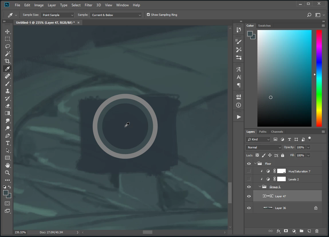 When I try to color-pick from a layer nested in a group that has adjustment layers set to clip to that group, the color picker will select colors not from the current layer's pixels, but from those belonging to the layers below it.