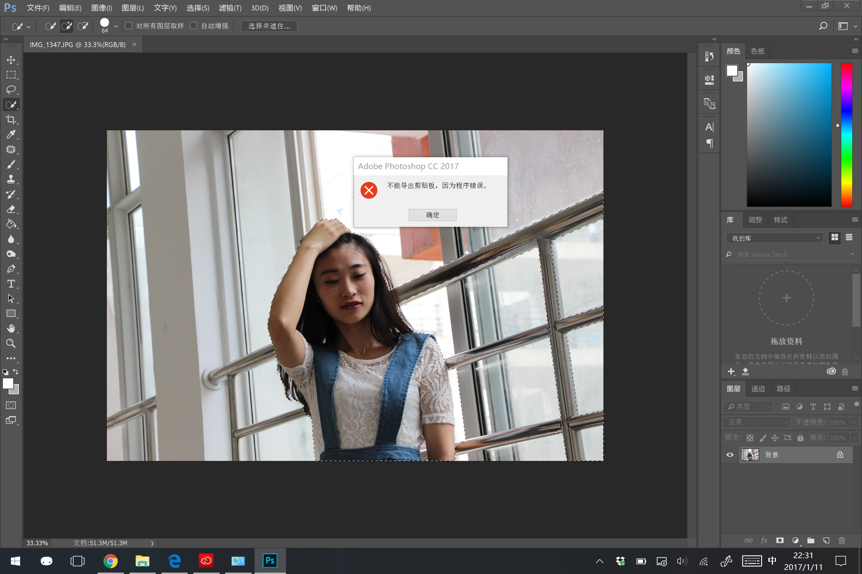 在执行快速选择时,经常会出现“无法导出剪贴板,因为程序错误”的问题,见截图。