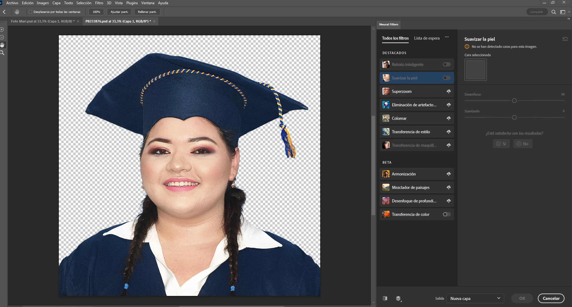 Desde hace unos días, el filtro de suavizar piel de los Neural filters, dejó de detectar caras de la nada, ya intenté con muchos retratos distintos, borrando las carpetas del filtro y descargando de nuevo, desinstalando y reinstalando Photoshop y nada, no hay caso. Necesito de su sabiduría para resolver este problema. Mi S.O. es Windows 10 Pro, versión 21H2.