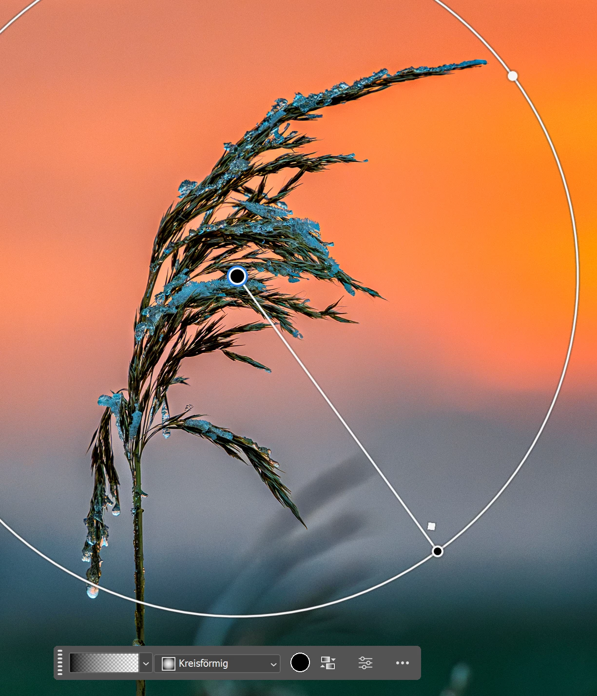 beim Verlaufswerkzeug fehlen die Auswahllinien (Foto zeigt wie es aussehen sollte), aber ohne diese Linien ist man beim Bearbeiten blind. Photoshop 26.3.0 Window. Treiber der Grafikkarte auf dem neuesten Stand.