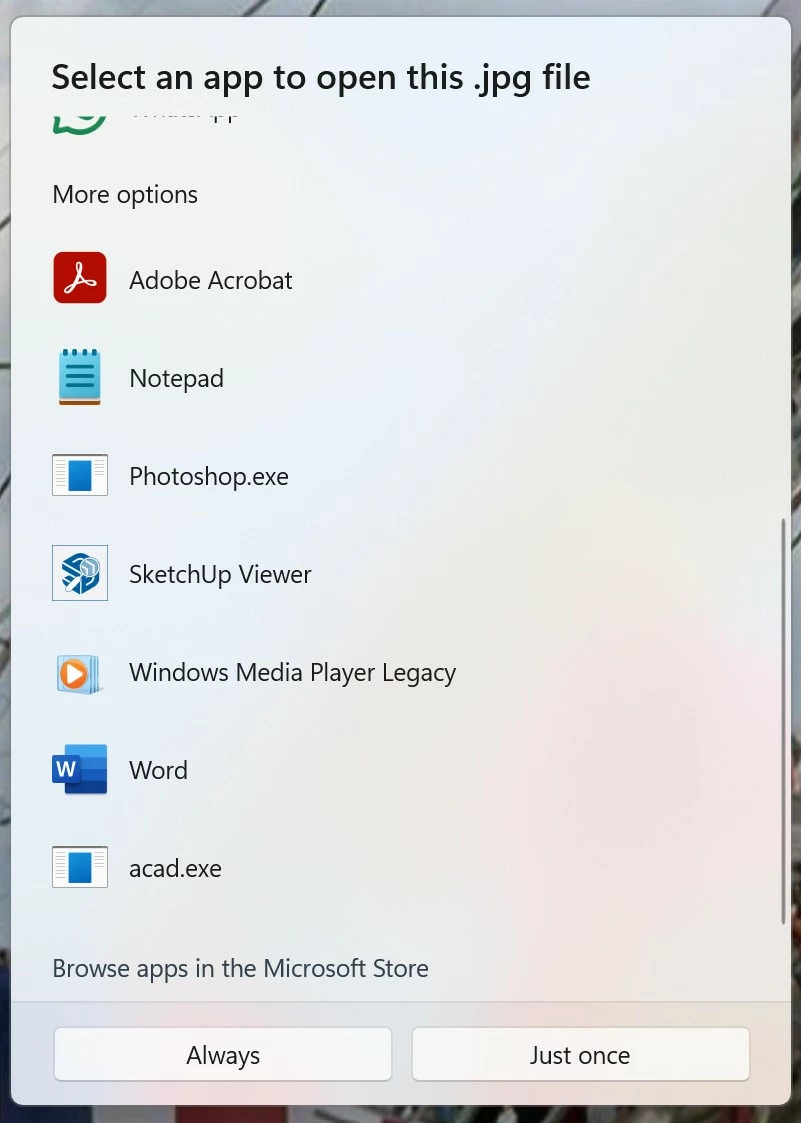 Hi Hive mind. Please help. My Photoshop has gone weird. If i am in the program, i can open files from the program no issue. But i cannot open any files in with photoshop from outwith the program. Make sense ? If i click on any file it will ask ( as normal ) what program i want to use to open file. In that menu, photoshop only shows as photoshop.exe. I click on that and nothing. If i look for the option of find another program on this pc, i can find photoshop but again i only have photoshop.exe. Have uninstalled and reinstalled multiple times but still exactly the same. Have tried redoing the default app to open files option but nothing. Any ideas please ? Thanks in advance