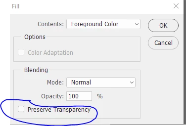Suddenly having an issue where the "Fill" command is not working. It doesn't matter if I use Shift+Backspace or Shift+F5 or by going to Edit>Fill. It goes through the motions and the Fill action is recorded in the history panel, but the layer is not filled. The only way I've successfully filled is with the Paint Bucket, and that's just not as convenient.