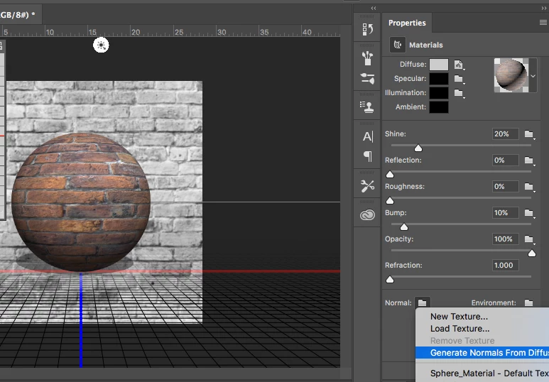so what happens is, i will have an 8-bit srgb 600x600px image, i will go to Filter > 3d > Generate Normal Map, I will see the spinning flower pedal wheel that Photoshop uses to show it's processing something, then i will see my 3D tab group, which is nested along with Layers, Channels, Paths, appear to have things appear in it such as "sphere" it all happens so fast that i can't tell what else appears, but it seems like a typical set of things that would appear in the 3D tab when in 3D mode... i believe the other things to be "default camera" or "default material" etc...