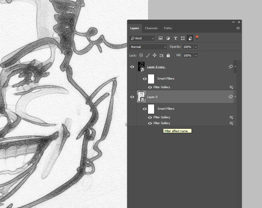 The filter effects have no decription in the Layers bar, and the word "filter effects" cannot be manually edited to show what type of Filter effect it is either.