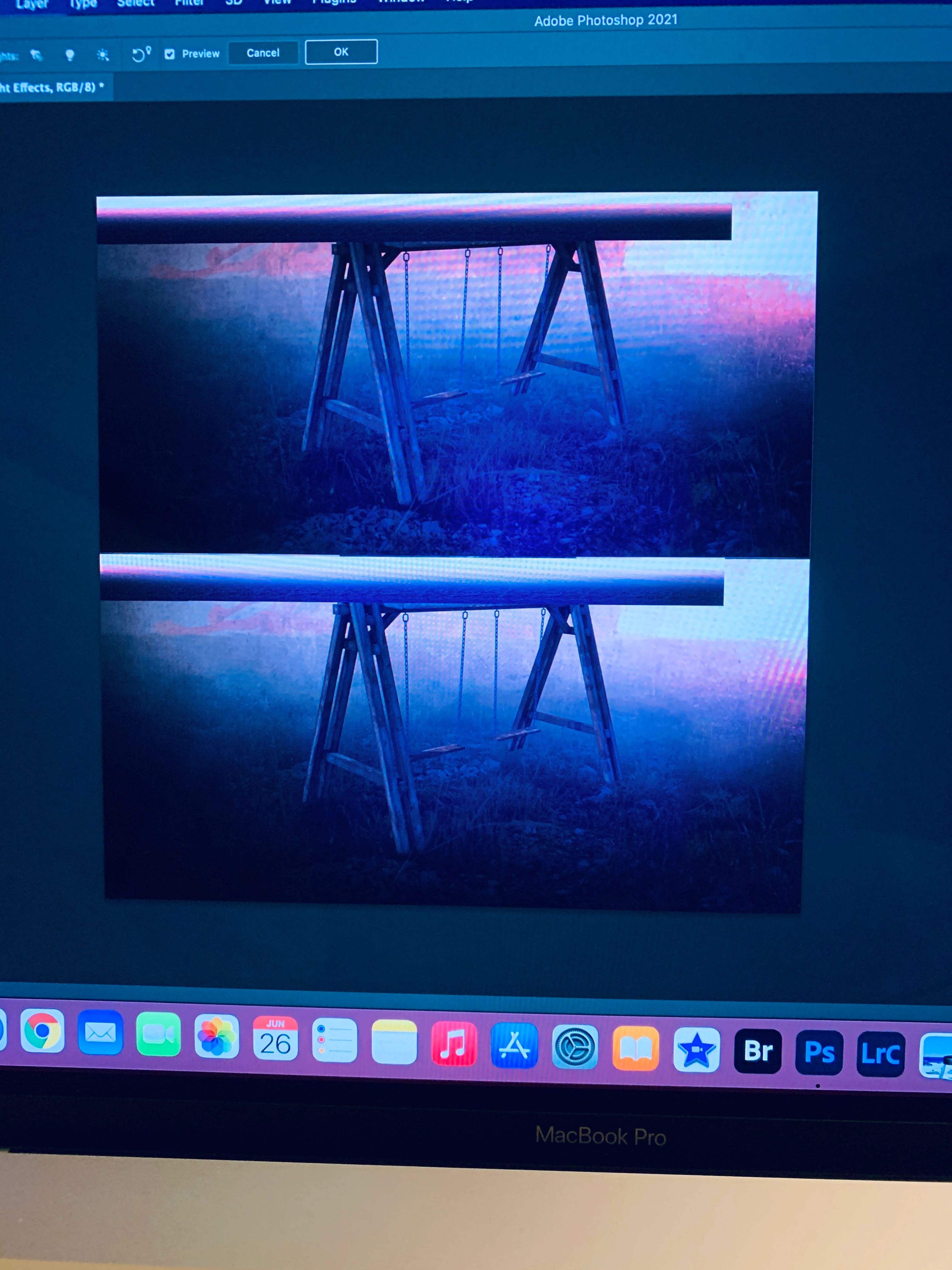 When i open the filter, it divides the photo into two and these two only shows the bottom area. I am using macbook pro 16".