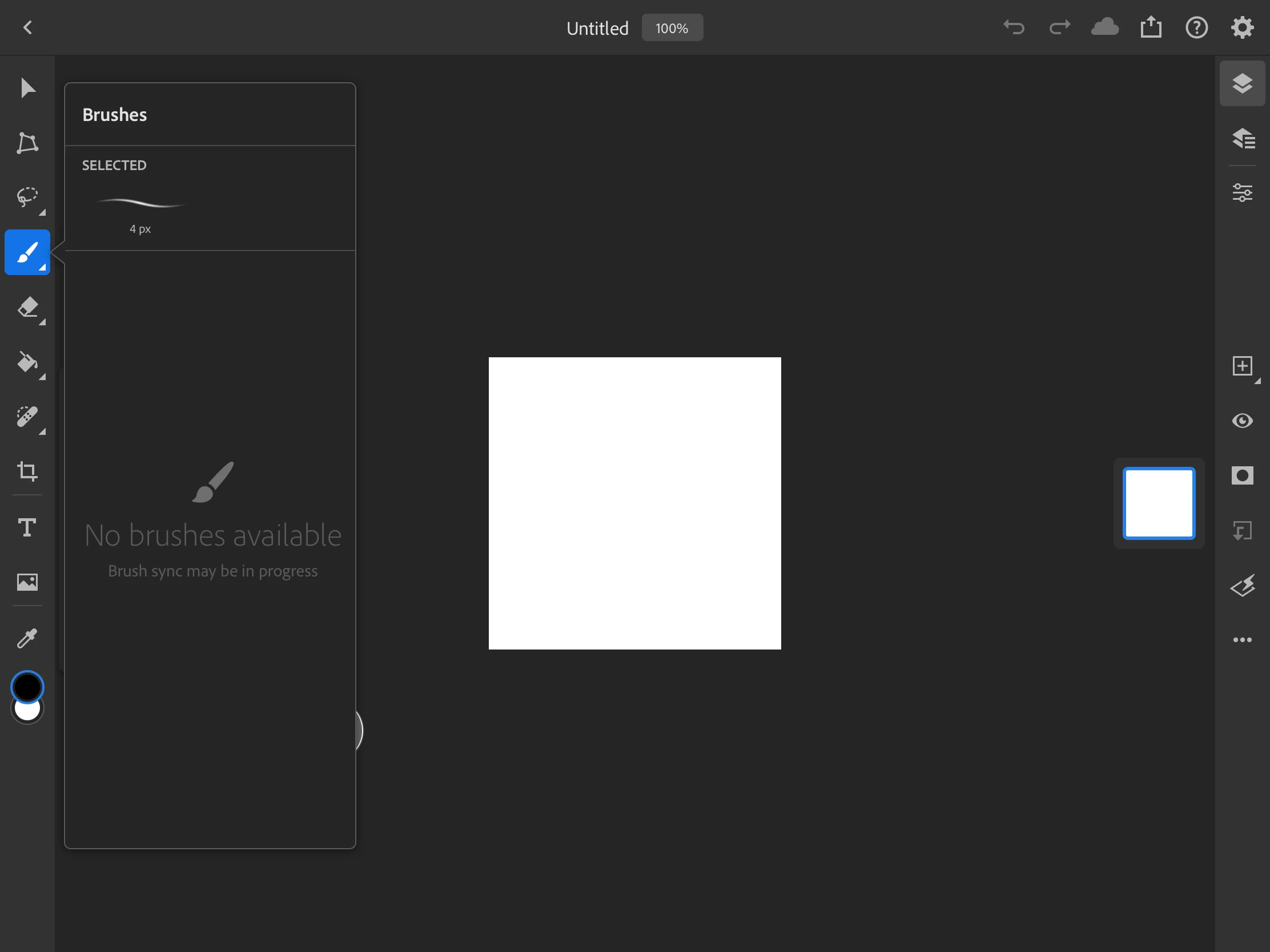 I opened Photoshop on-my iPad Pro today and when I tried to change my brush or eraser shape it said that there were no brushes available other than the ones I had selected. This is really weird because I hadnot uploadedany brushesto Photoshop, so it should let me use the preset default brushes but it wouldn't show them for some reason. I have attached some screenshots so that you can see what I'm talking about. This has never happened to me before and it seemed like it just came out of the blue as I haven't changed any settings recently.