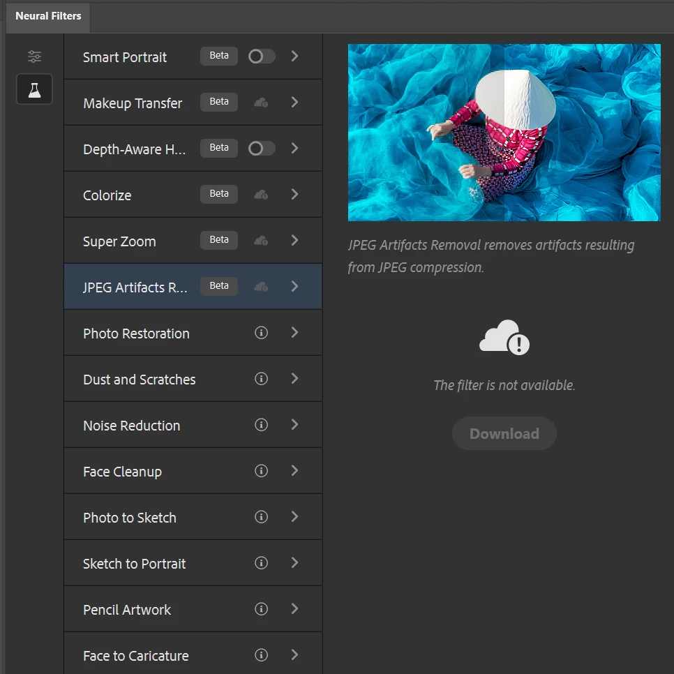 Unfortuantely for me, many need to be downloaded and neither the cloud icon nor the 'download' button cause that to happen like it says it should here Neural Filters