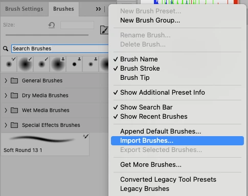 Folder to put Photoshop brushes doesn´t exist so I cant import any brushes to Photoshop. Please help
