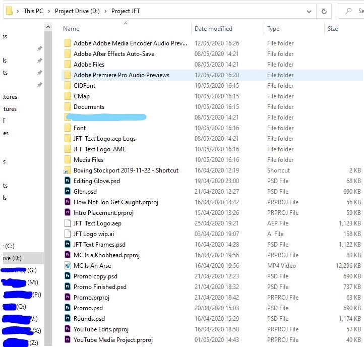 As you can see all my PSD, PRem files etc.. are all in the one folder, but i have Autosave,CIDFont?, CMap? etc and all those other files there as well.