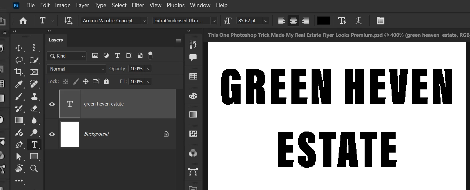 You are zoomed to 400% with no anti-aliasing on the characters. Although text is vector, in Photoshop, it is displayed using the pixels of the image and therefore has options on how to smooth the edges.