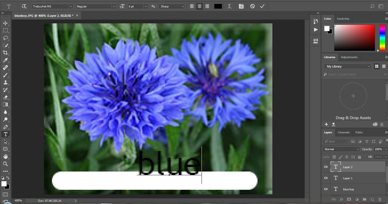 When i select the text tool and type nothing happens, so i hide the layer then unhide it and the cursor is almost half the size of the image.