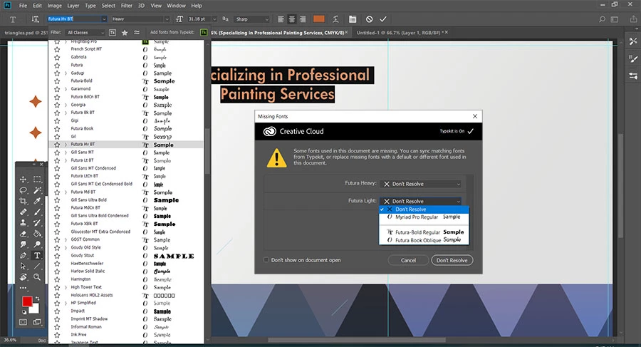 2nd: the Futura Fonts are out of order in the font list in Photoshop and mixed with "G" labeled fonts.