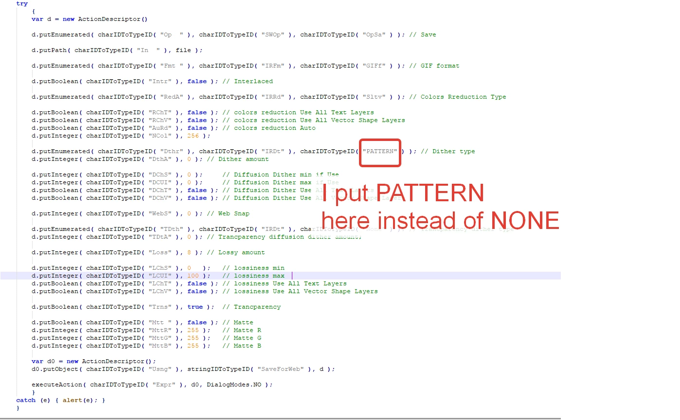 For animated gifs: gifsicle sets Photoshops SaveForWeb parameter "lossy" to 60 that cannot be changed.