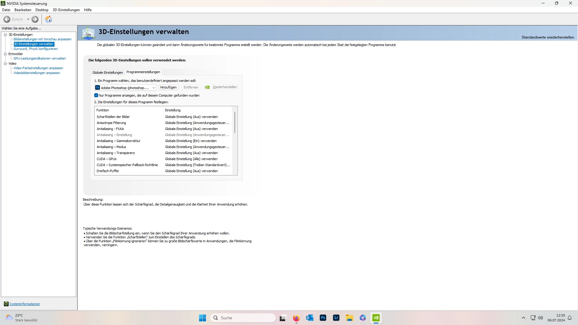 Wenn ich wie in den Foren beschrieben in den Leistungen etwas ändere, ändert sich nichts. Es sei den, ich nehme den Haken bei Grafikprozessor raus, dann ist das Bild aber auch direkt unschön.