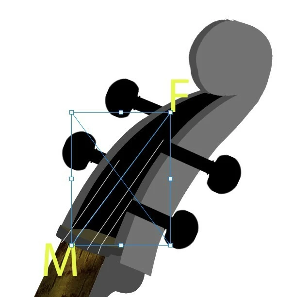 The image below shows a cello string running diagonally from point M to point F within a Transform control box. Is it possible to freeze point F and move or rotate the transformation from point M?