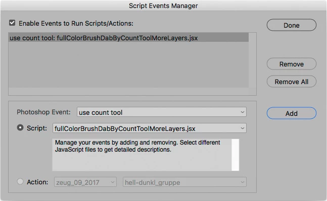 So by linking a Script to creating counters it would be possible to create Smart Object instances at manually defined positions without sacrificing a more frequently used tool (like Colour Sampler Tool or Pen Tool).