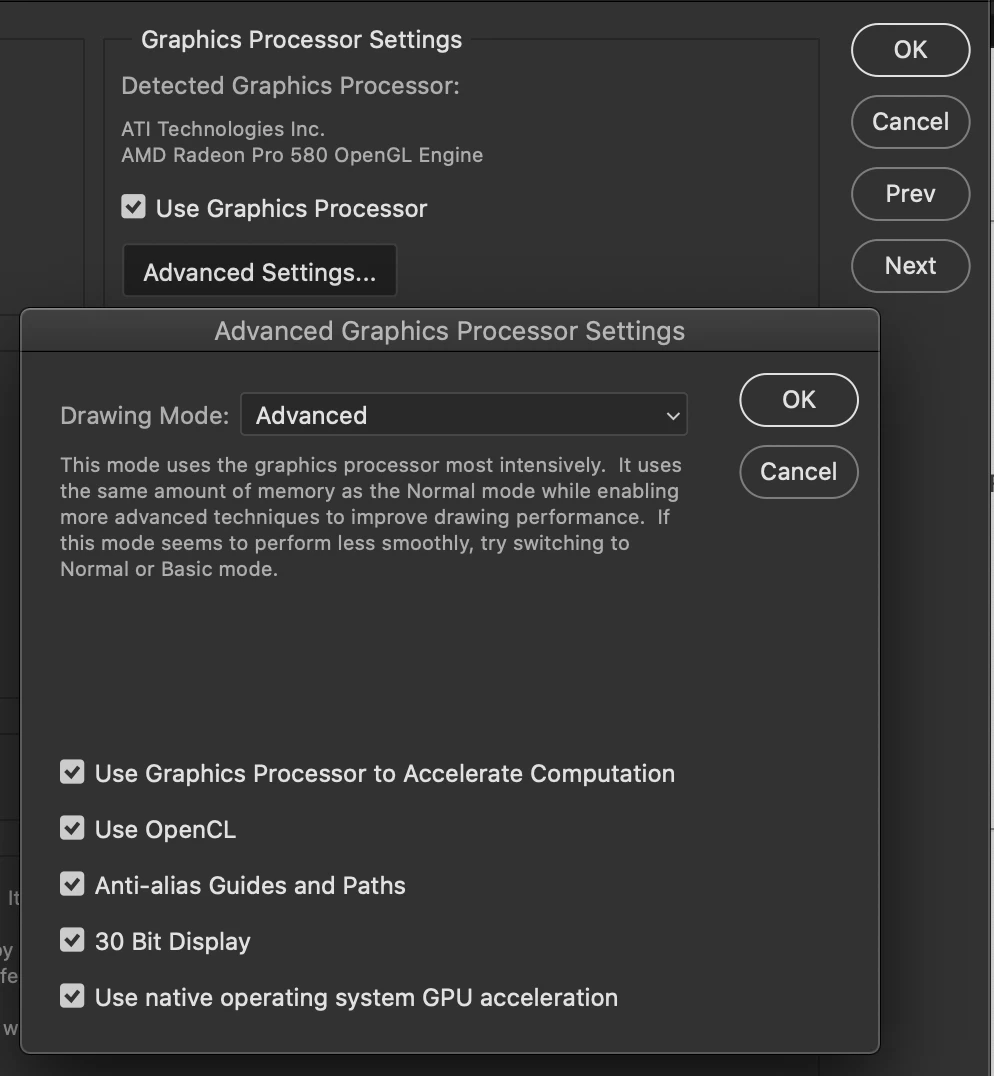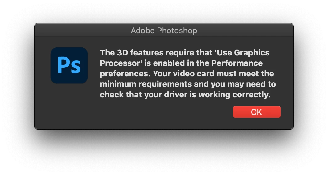 Photoshop obviously requires the graphics processor to run this feature. Turning it on and off DID NOT SOLVE THE ISSUE. Where is the SUPPORT??????