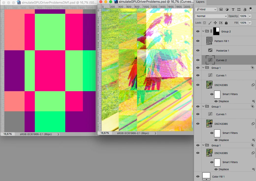 so I placed an image into a Photoshop Doc earlier and due to some graphics card glitch, the image became messed up. But the thing is, I really like what's happening with the glitch, and want to figure out a way to deliberately create this effect. It reminds me of certain CMYK print effects I've seen around. Any ideas?