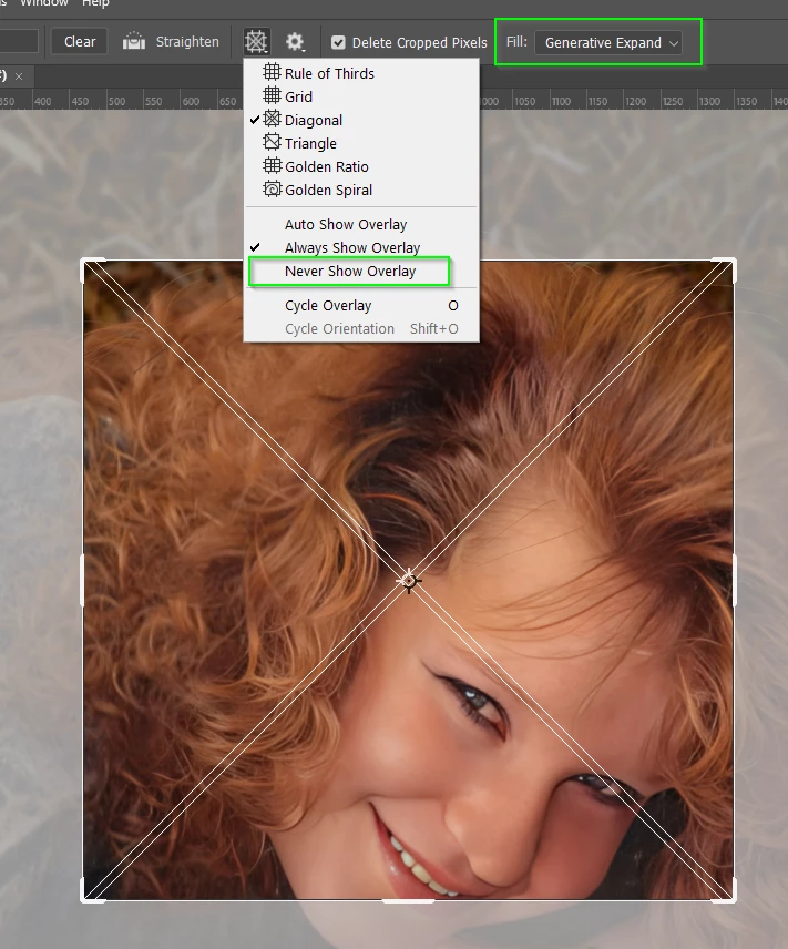 I am a traditional photographer, and don't like the automatic grid that appears with generative fill in the latest Photoshop. How do I get rid of the grid so I can use Photoshop with traditional tools?