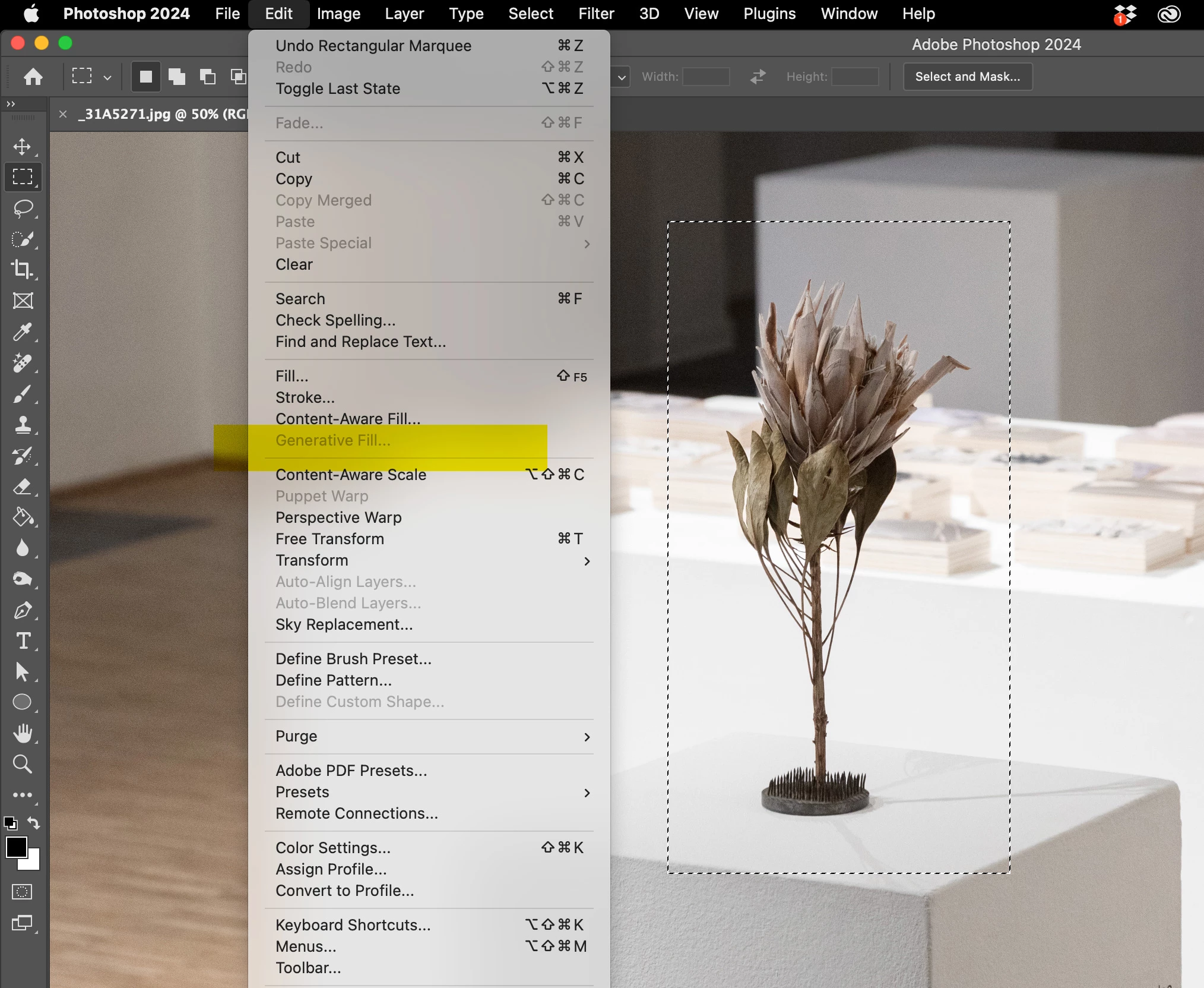 Hello, i am trying to use the Generative Fill possibilities in AdobePhotoshop. I have installed the latest version (Photoshop 25.0.0.), i have given the correct age (over 18 years), i am on an company account from my university, we have even installed a new account on a different email, but still = generative fill is not available (see screenshot).