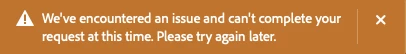 Error is attached. I’ve received this in the past but usually Adobe fixes it in a few hours. I don’t see anything about this on https://status.adobe.com/
