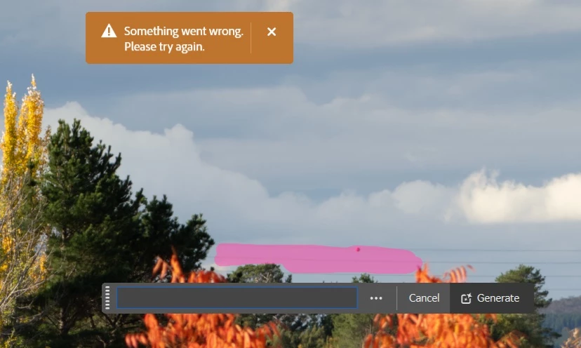 Generative Fill yields error message "Something went wrong..."