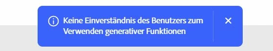 Wenn ich versuche, in Photoshop Online generative KI-Funktionen zu nutzen, heißt es "Kein Einverständnis des Benutzers zum Verwenden generativer Funktionen". Wo kann ich das ändern?