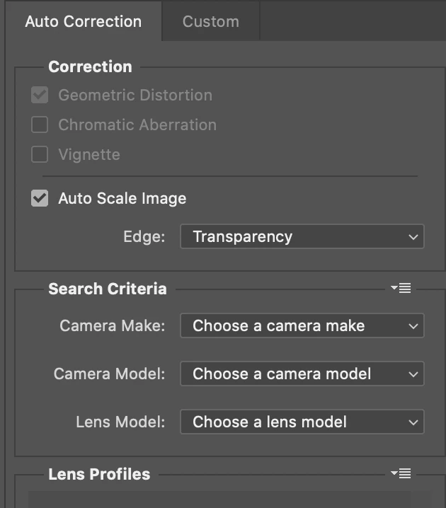In Filter->Lens Correction->Correction, I want to turn off Geometric Distortion but the selection is grayed out. How do I unlock it?