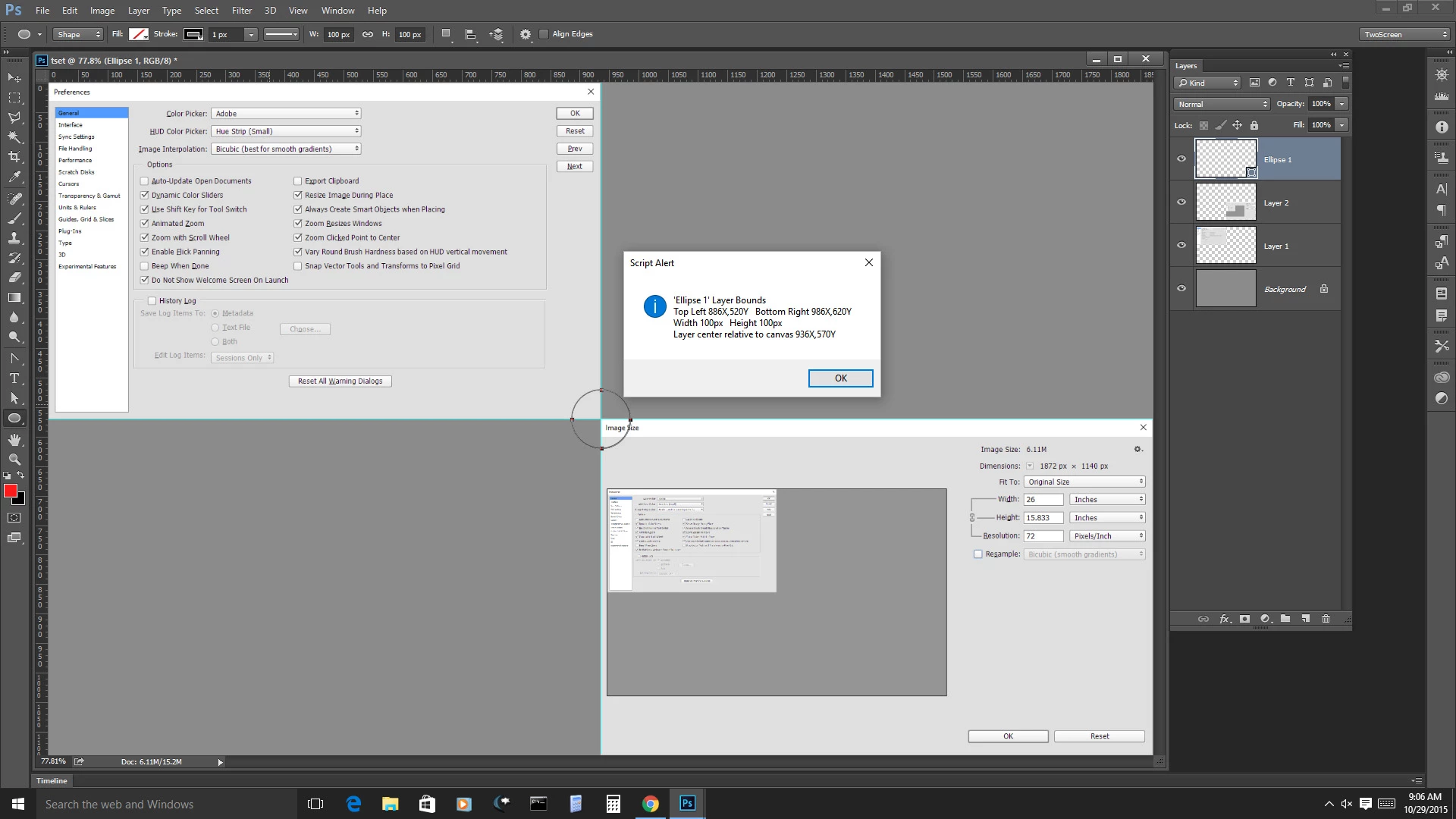 I create a demension 100 x 100 vector layer, as you can see in the properties panel.