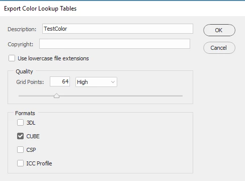 I am trying to export couple of color grade edit (a curves color edit, color balance, and second curves adjustment--3 adjustment layers total) into a .cube LUT file to use on future photos.