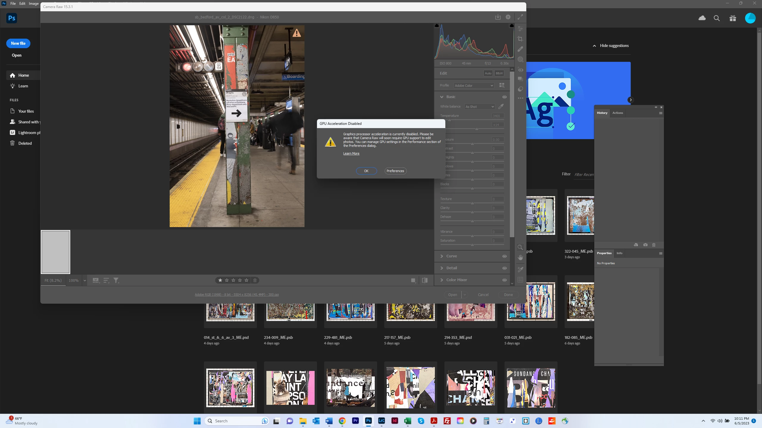I'm getting the referenced message when trying to open a RAW file in PS. Does anybody know why and what it means? I've also attached a screenshot of my Preferences settings. Thanks for any help.
