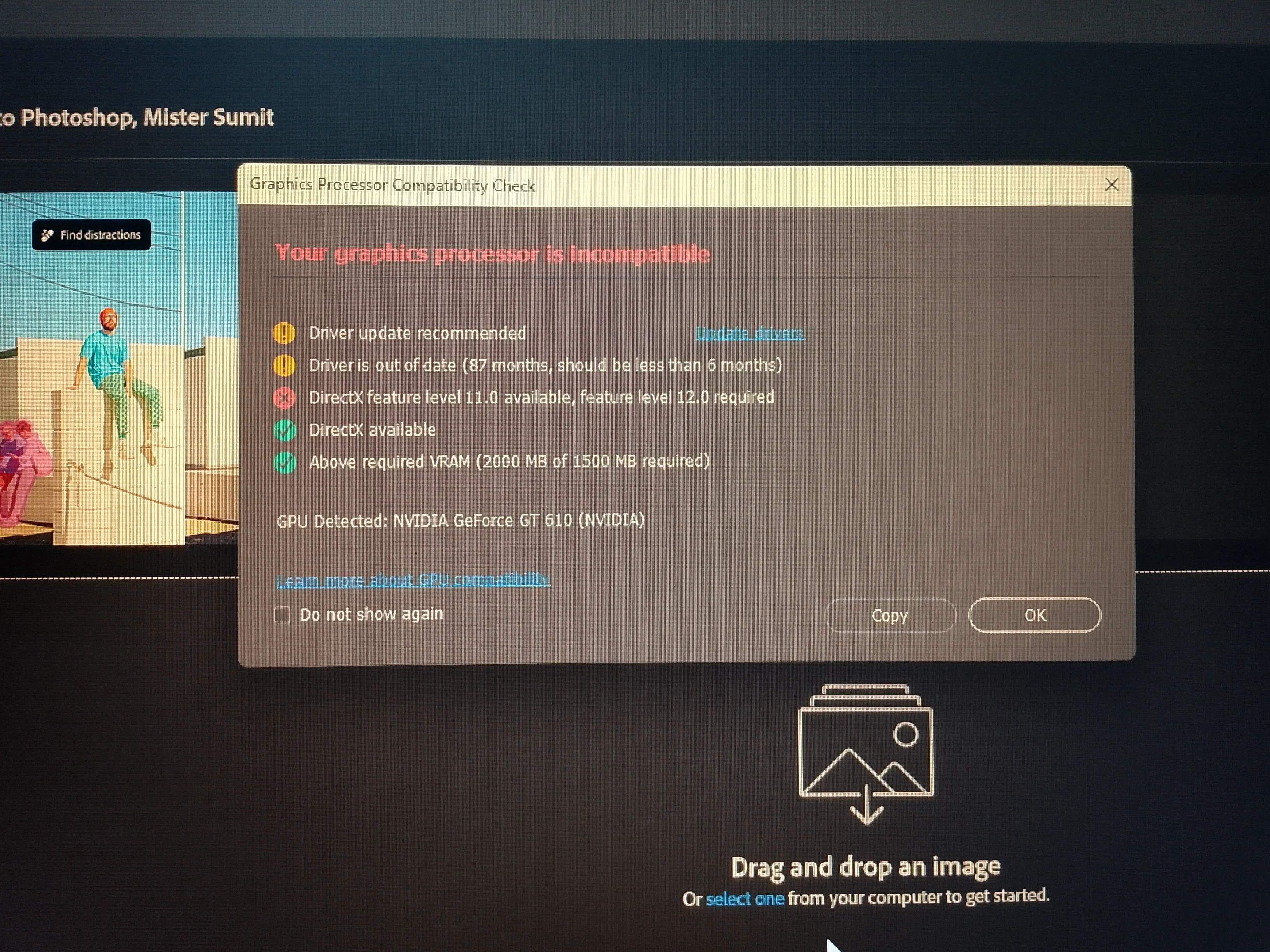 Your graphics processor is not compatible error in Photoshop. How to resolve