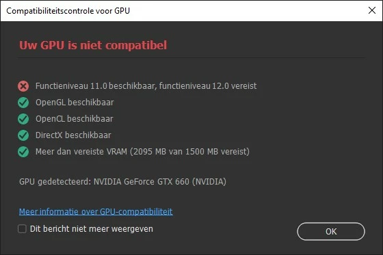 But on my much newer desktop I get this message(screenprint) that my GPU is not compatible. Desktop is 4 years old running on W10.