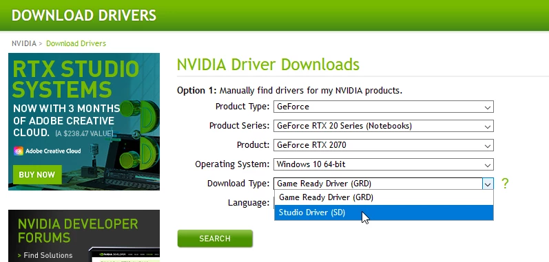 Pretty common issue, starts up with an error saying can't use the GPU and the options in Performance are greyed out. I've fixed this issue on my home machine in the past by mucking around with beta drivers and such but haven't turned up anything for this specific model laptop/GPU in my googling.