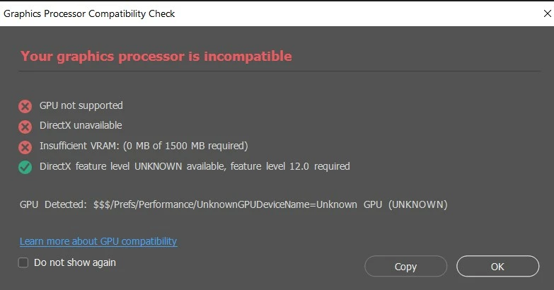 GPU unknown - Photoshop 2024 but newest driver