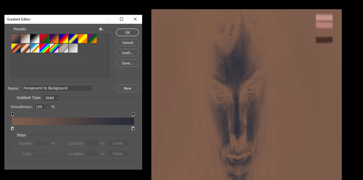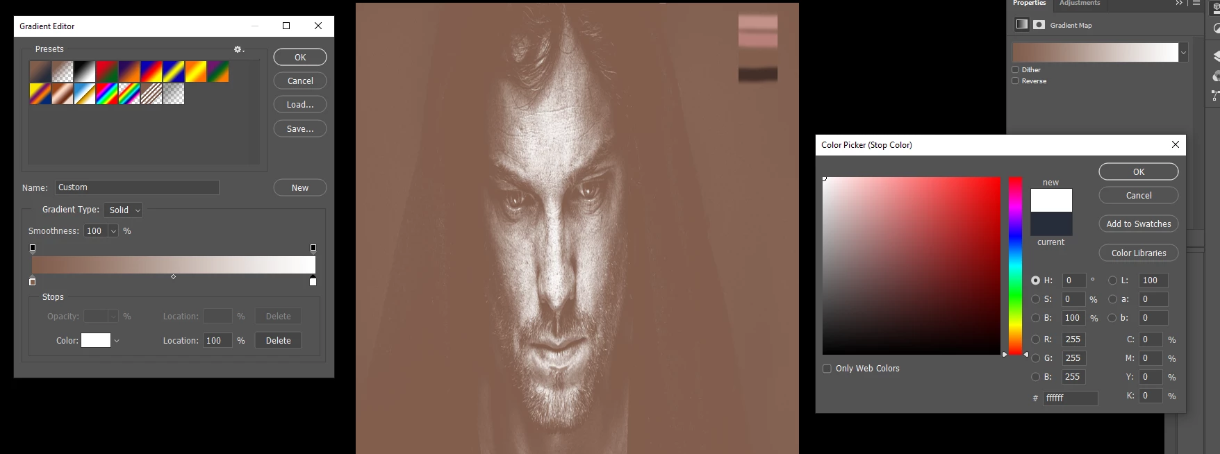 Gradient map goes to white whenever using eye drop tool to change the color in the gradient editor