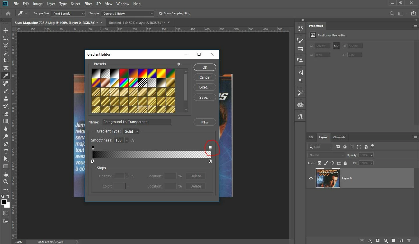 Is the "Transparency" box in the Gradient options checked?