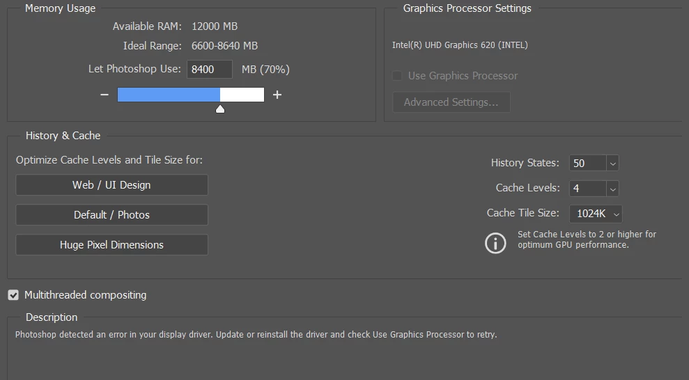 I have already done all updates of Nvidia (mine is GeForce MX150 4GB) my Windows is updated too and already unistalled and installed Photoshop many times, but it works only for few minutes until it crashes and then when I open it again this error comes up!