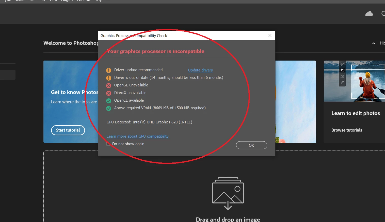 I do not know what else to do! I will not buy another gpu since mine IS compatible with photoshop. Is someone with the same problem?? Anything else I could do?? Please I really need to work!