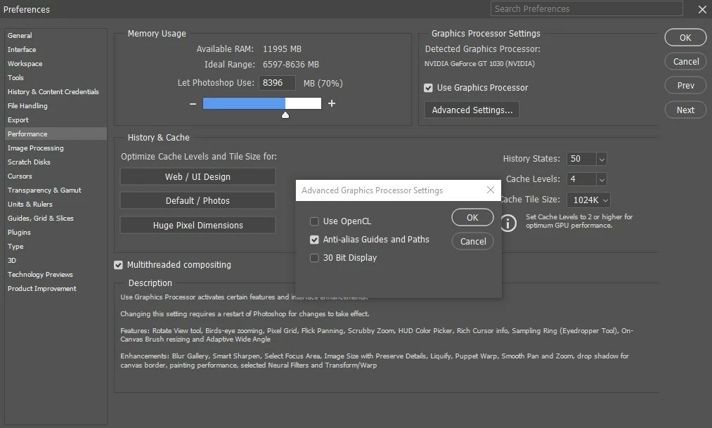 Hi. Operation on Windows 10, I have a pretty basic graphics card but until now I haven't had issues with the neural filters/camera raw filters. After the last update, I am getting an error message about 50% of the time (that it encountered a fatal error and would be disabled for the rest of the session). These are my settings. Is there anything I can do? Card drivers are up to date.