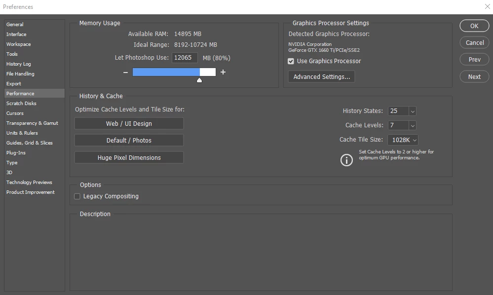 I've gone through and upped my performance settings (pictured) and added a scratch disk but it hardly makes a difference.