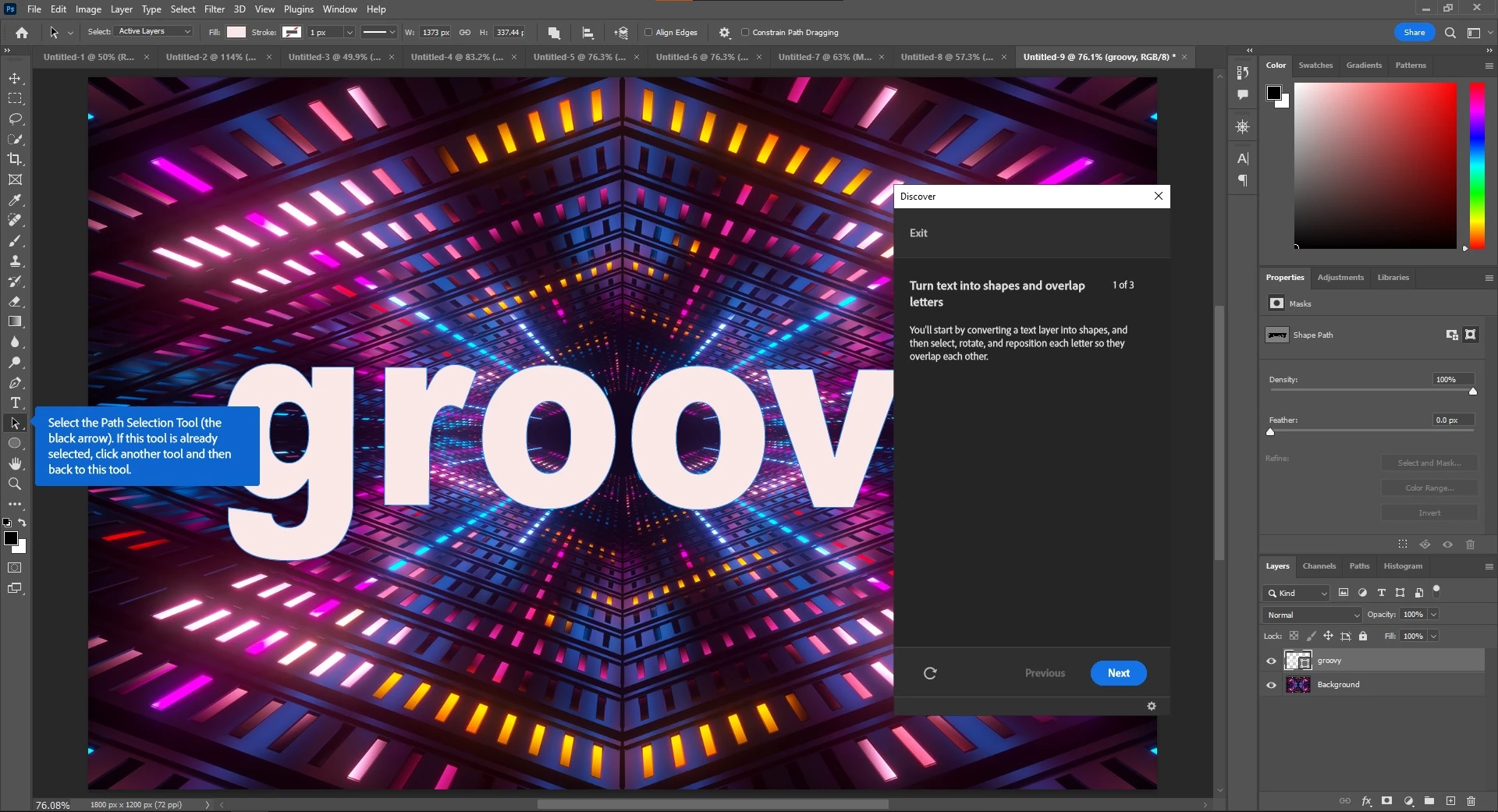 Here's an example, with the "Turn text into shapes" tutorial, where it asks me to select the Path Selection Tool but fails to properly recognize the input after I'm done selecting the tool in question.