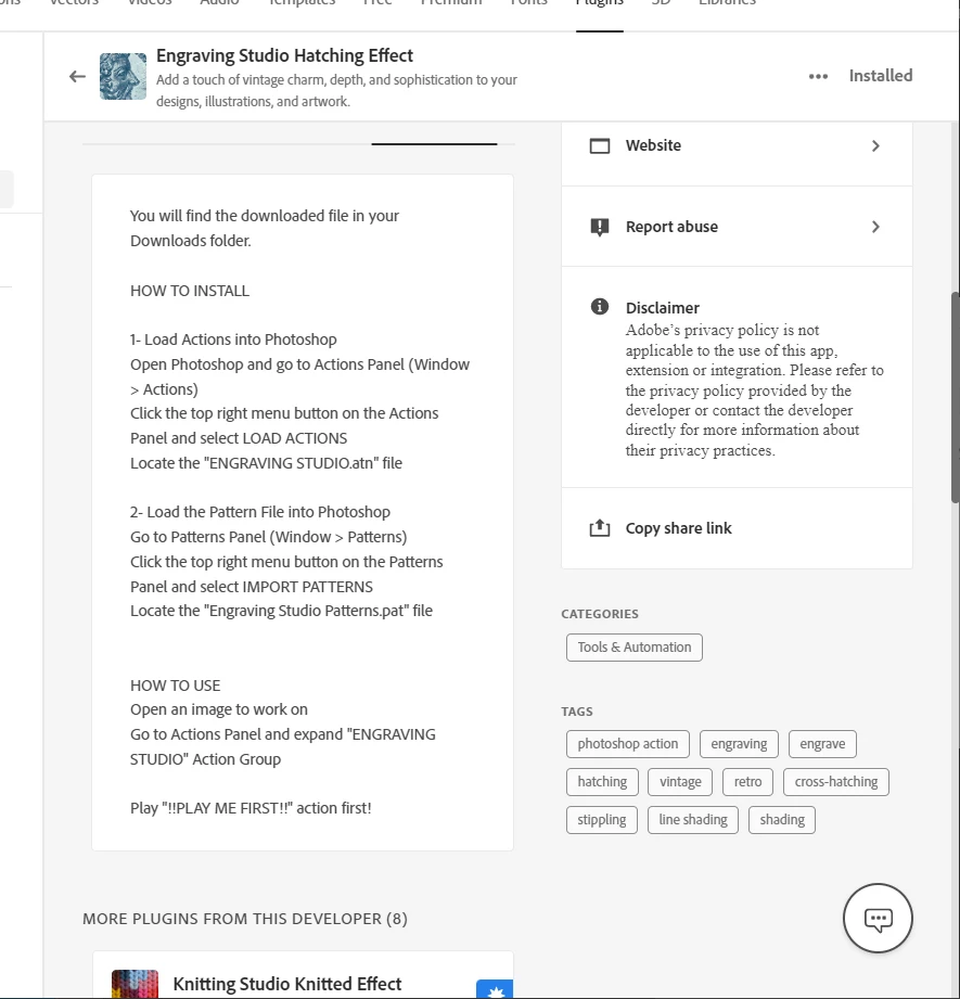 I have bought ENGRAVING STUDIO HATCHING EFFECT PS plugin by DesignRocket and I am really having a hard time figuring out how to access it.