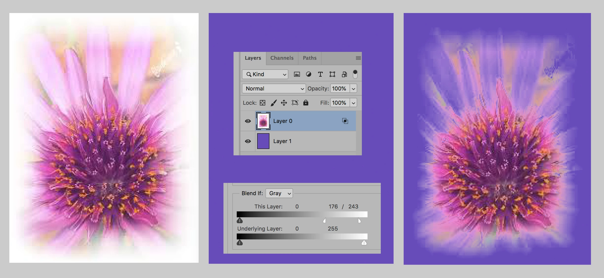 What I am trying to achieve is that Photoshop allows the background to show through the graduation but only upto where the logo colours become solid.